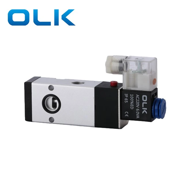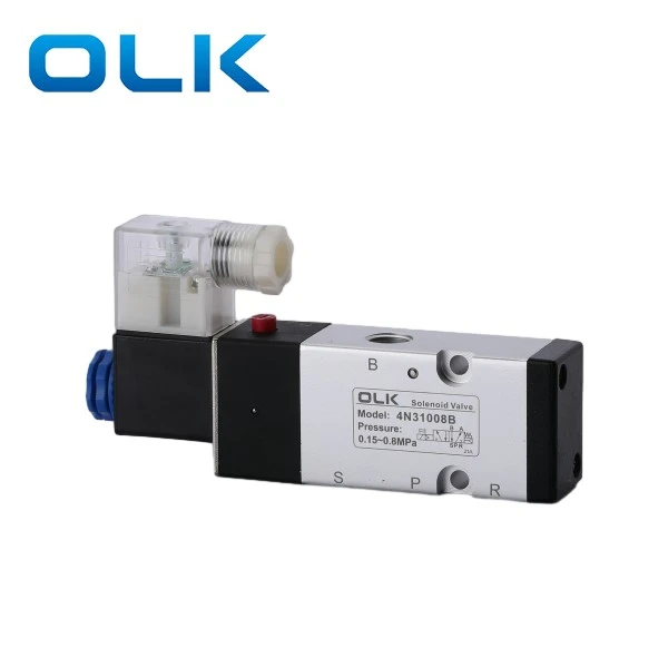 OLK 2Pocation 5 Way 4N310-08 Van điện từ tấm là G1/4 Kích thước cổng.4N310-08 Van có một thiết kế đầu ra không khí trở lại, cho phép lắp đặt linh hoạt và tiết kiệm không gian, tăng cường hiệu quả tốc độ phản hồi và độ ổn định của hệ thống.